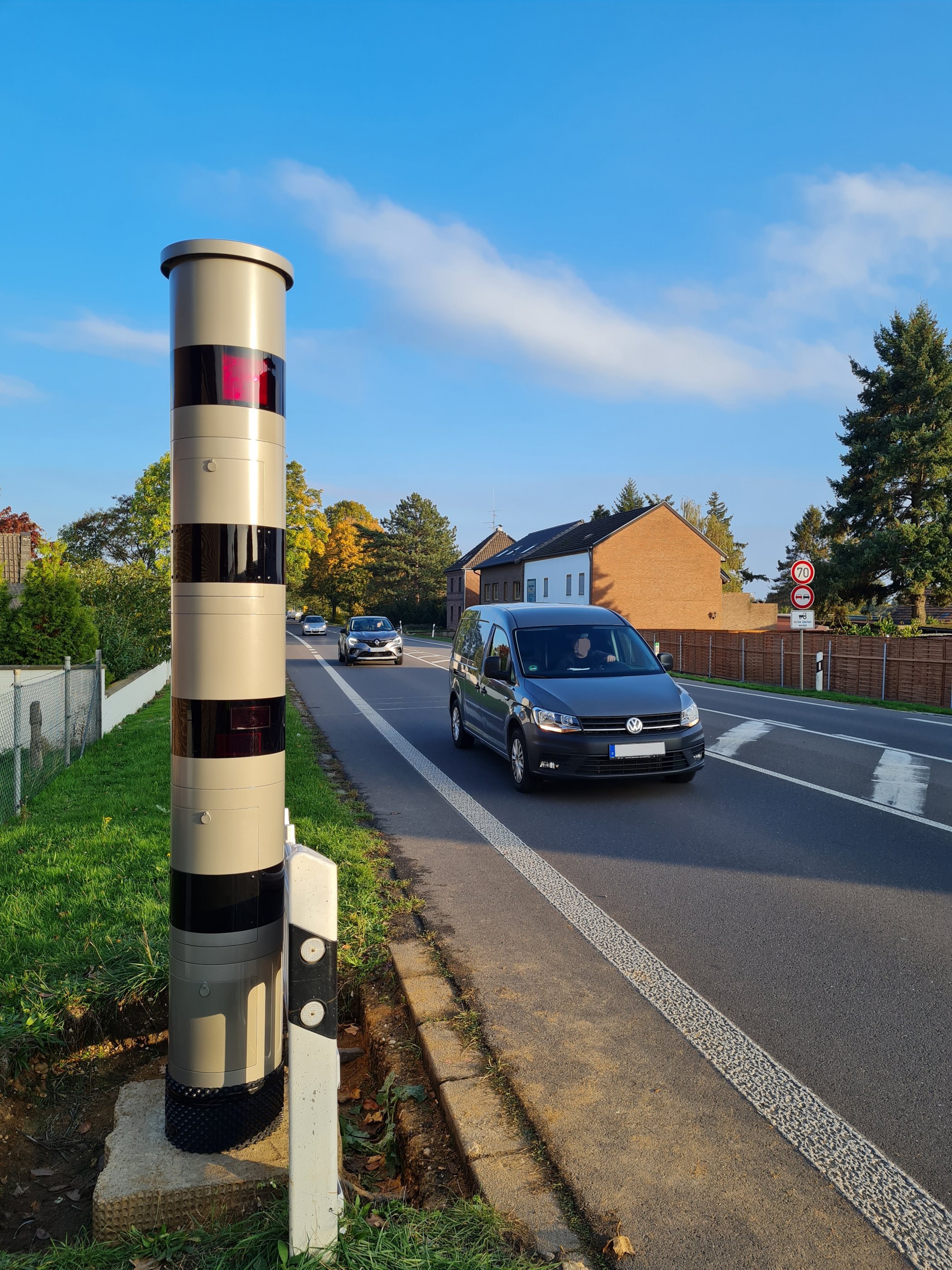 Auf den Fotos sehen Sie das POLISCAN Speed System im Einsatz als stationäre Geschwindigkeitsmessanlage. POLISCAN Speed wird auch als mobiles Geschwindigkeitsmessgerät oder im Enforcement-Trailer eingesetzt.